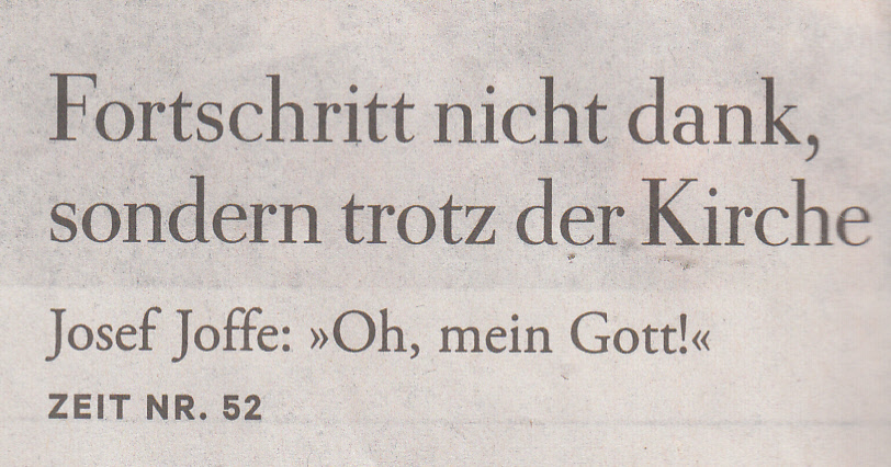 sehr kluger Leserbrief zu Josef Joffe "Oh mein Gott" in 52/2015 S. 10