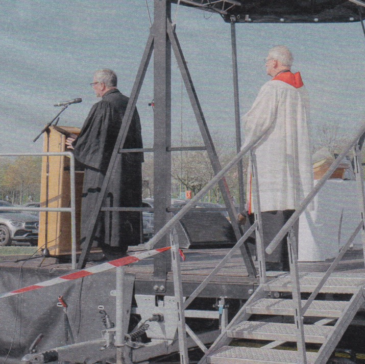 "ein ökonomischer Karfreitags-Gottesdienst, 400 Autos und ein improvisierte Kanzel."